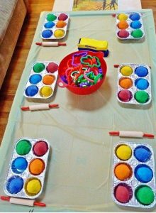 Materiale folosite au o gama foarte diversificata, de la culori, acuarele, plastilina, slime, foarfece si coli, pana la casute, castele, teatru de papusi, truse de doctori, animale, plusuri, bebelusi si alte jucarii ce tin de ingrijirea bebelusului, figurine ce seamana cu oamenii, figurine animale, jucarii care sperie (serpi, dinozauri, soareci, monstrii), etc.